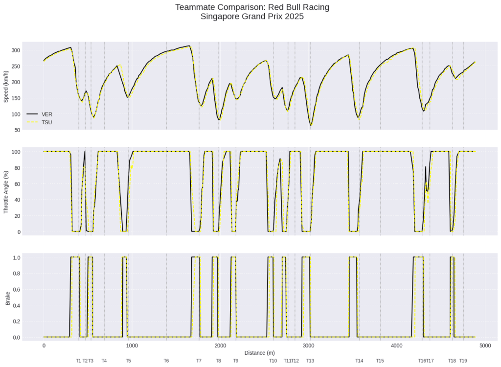 チームメイトは、最良の比較対象だ。同じマシン(理論上は)を駆る王者フェルスタッペンと角田のDNAプロファイルを比較することで、マシンの真のポテンシャルと、二人のドライバーの走りの違いが浮き彫りになる。